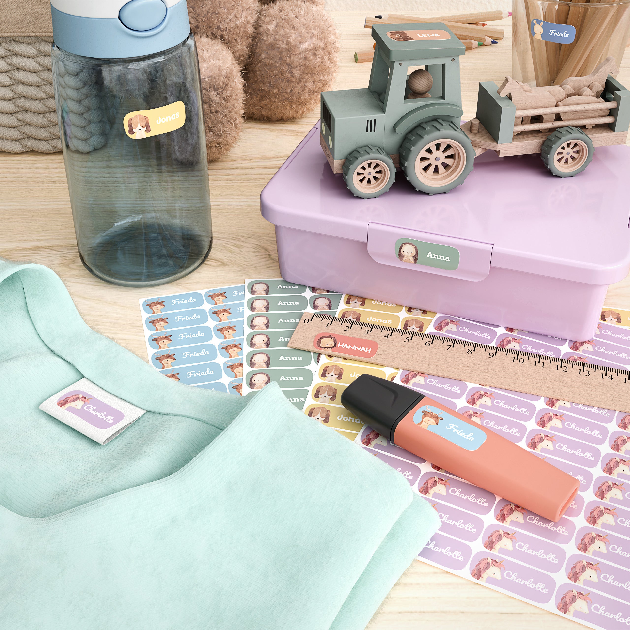 Mach Schluss mit Verwechslungen und bring Ordnung in den Alltag – mit unseren farbenfrohen Namensaufklebern für Kinder! Die personalisierbaren Sticker haften zuverlässig auf Kleidung, Brotdosen, Trinkflaschen und vielem mehr. Sie sind waschmaschinen- und spülmaschinenfest, besonders langlebig und ganz einfach anzubringen – ganz ohne Bügeln. Gestalte deine Aufkleber individuell mit Namen, Farben und Motiven, und sorge dafür, dass alles, was dein Kind liebt, sicher wieder nach Hause findet.
