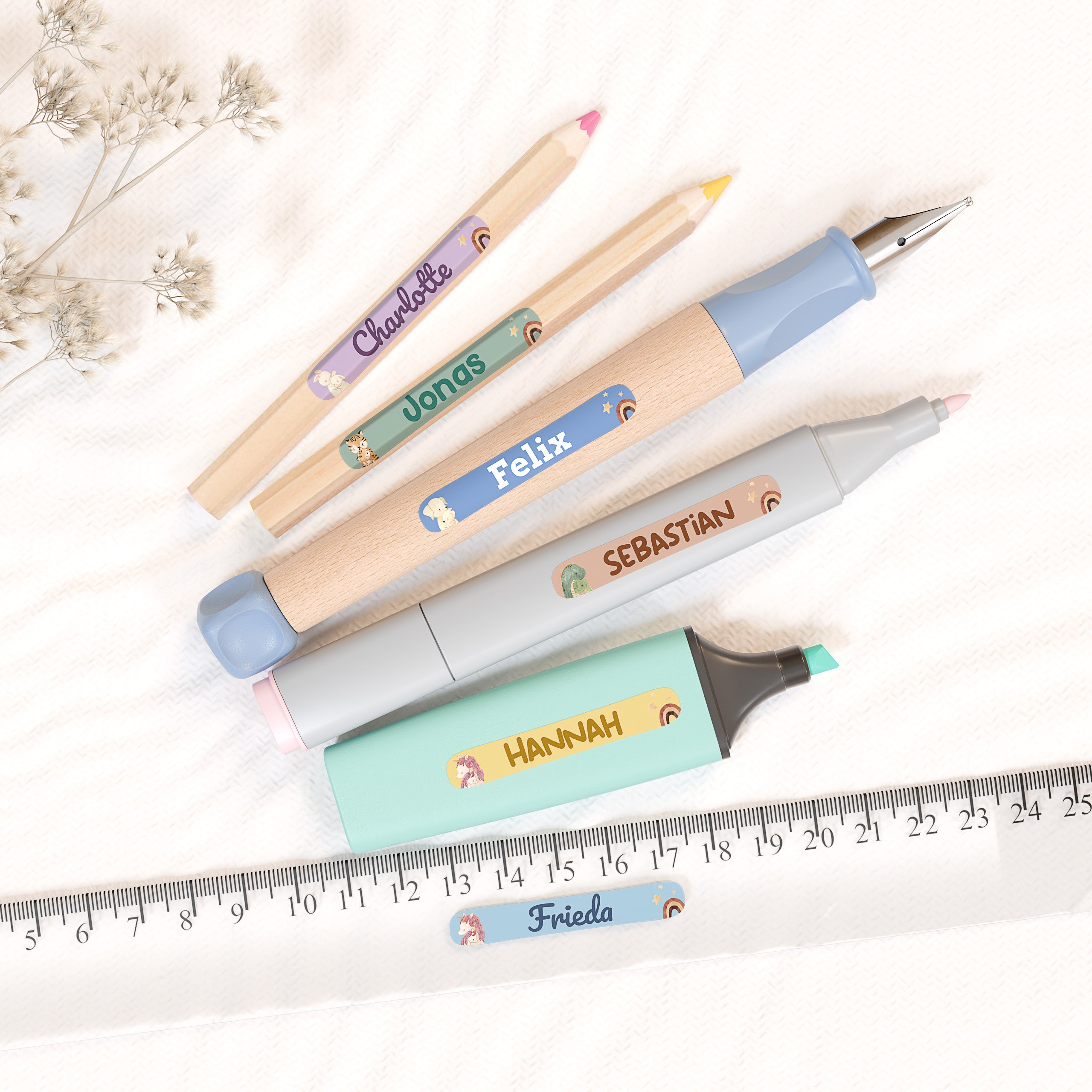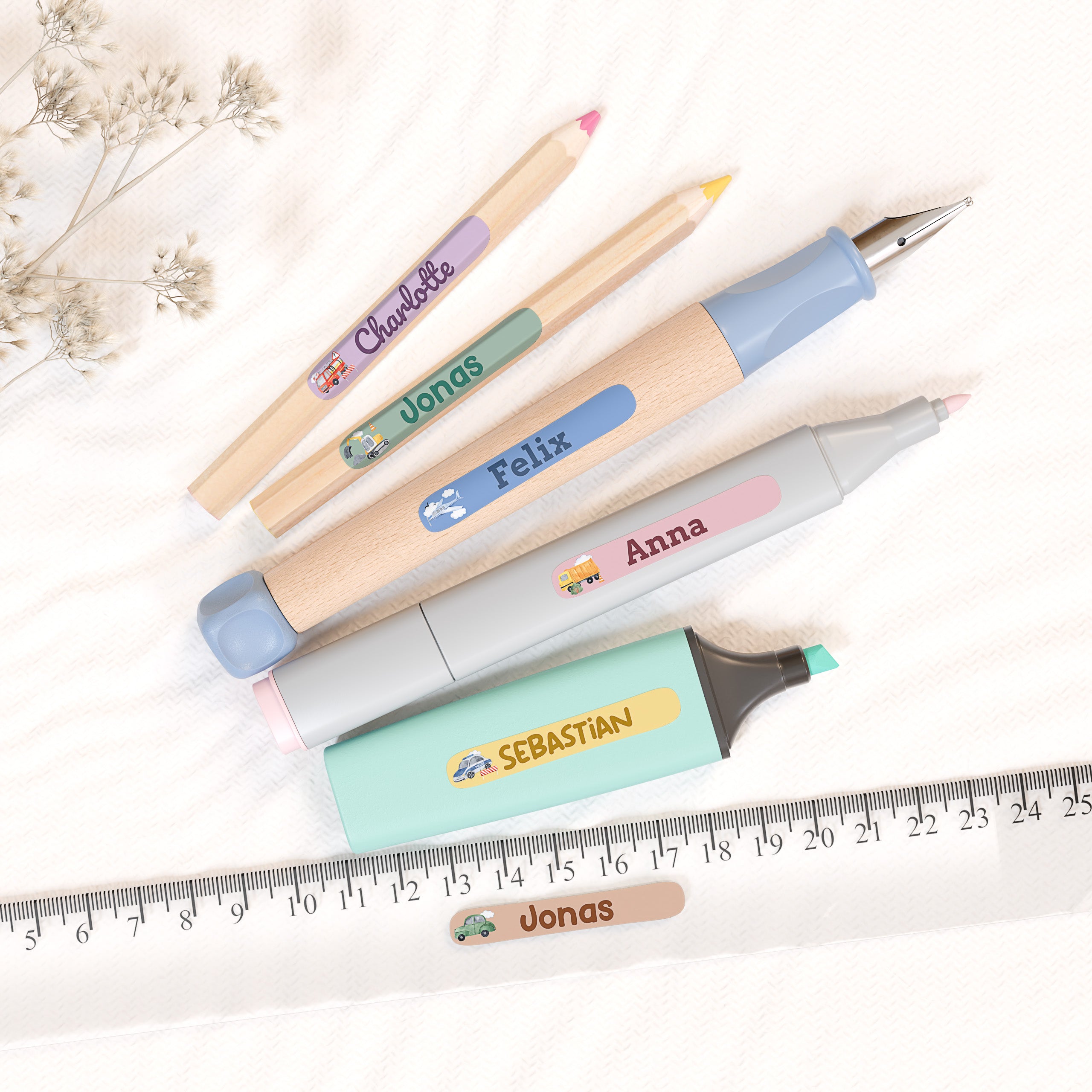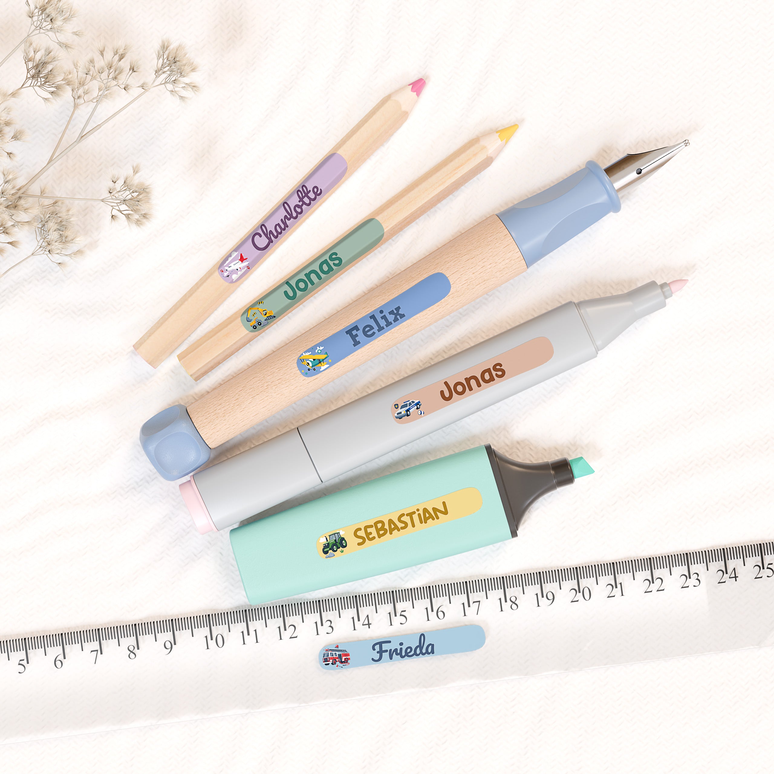 Mach Schluss mit Verwechslungen und bring Ordnung in den Alltag – mit unseren farbenfrohen Namensaufklebern für Kinder! Die personalisierbaren Sticker haften zuverlässig auf Kleidung, Brotdosen, Trinkflaschen und vielem mehr. Sie sind waschmaschinen- und spülmaschinenfest, besonders langlebig und ganz einfach anzubringen – ganz ohne Bügeln. Gestalte deine Aufkleber individuell mit Namen, Farben und Motiven, und sorge dafür, dass alles, was dein Kind liebt, sicher wieder nach Hause findet.