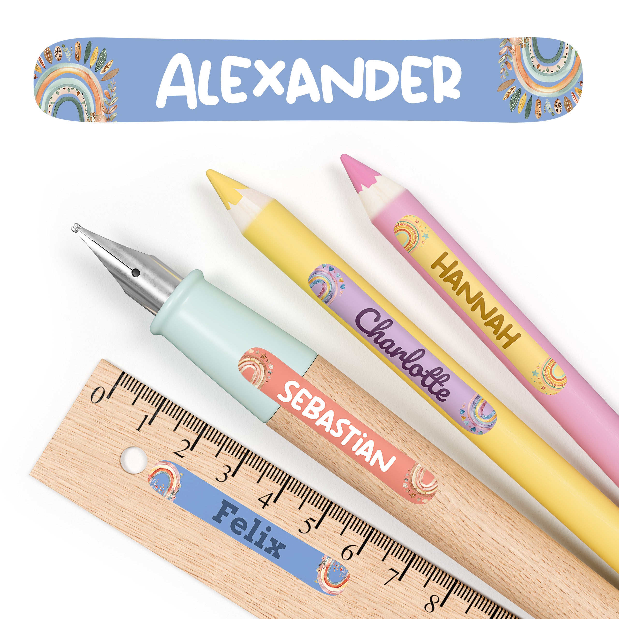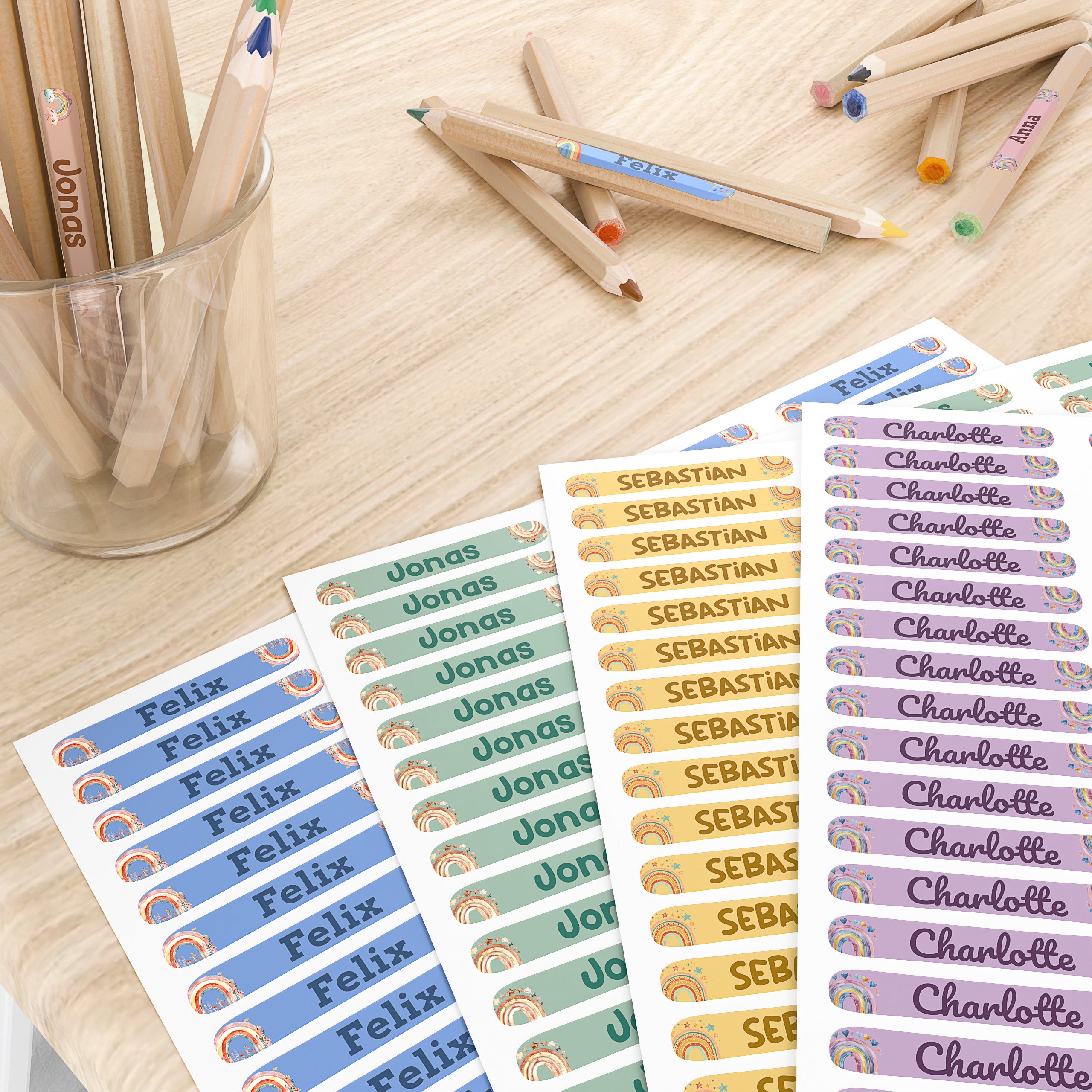 Namensaufkleber für Kinder – bunt, persönlich, haltbar. Markiere Schreibmaterialien und Gegenstände deines Kindes und sorge dafür, dass nichts mehr verloren geht – Tag für Tag, Jahr für Jahr.