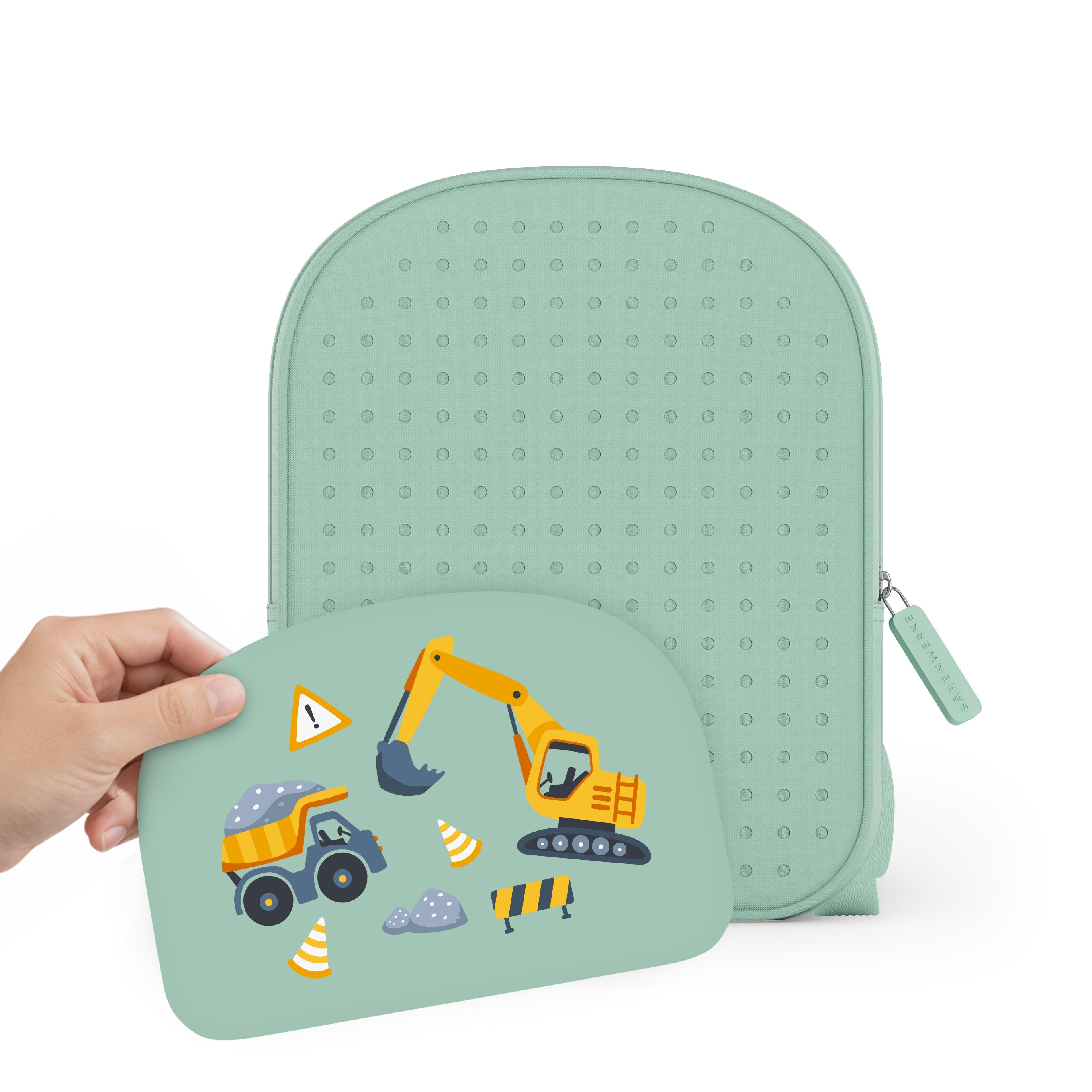 Im Lieferumfang ist eine personalisierte Frontplatte enthalten. Weitere Wechselplatten sind separat im Shop erhältlich und ermöglichen es, dem Rucksack jederzeit einen neuen Look zu verleihen.