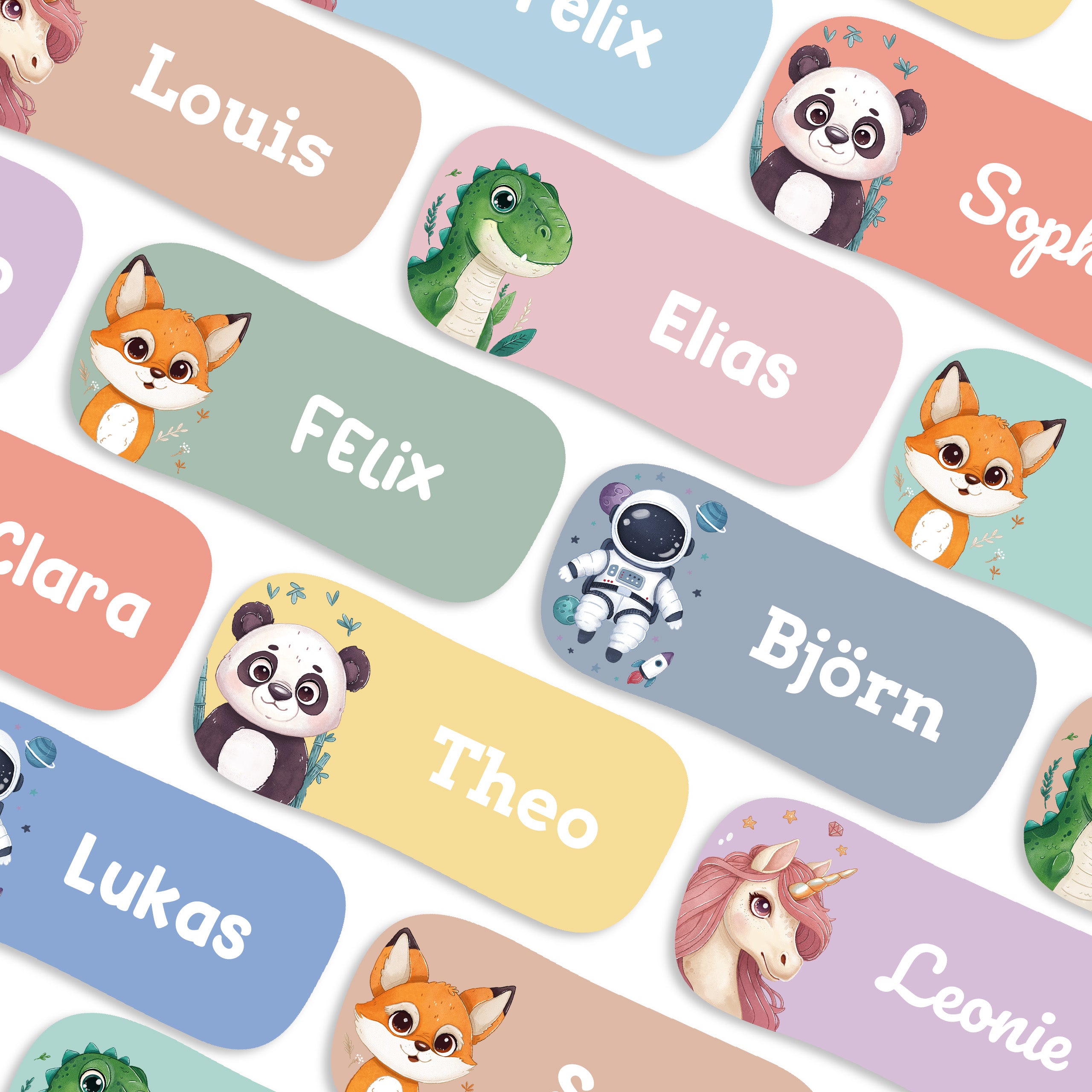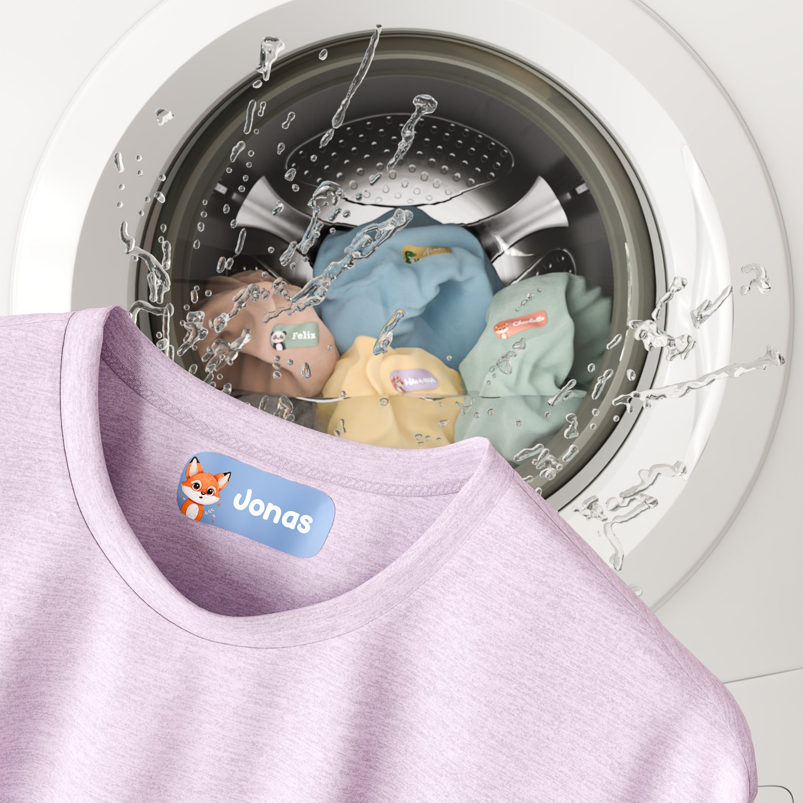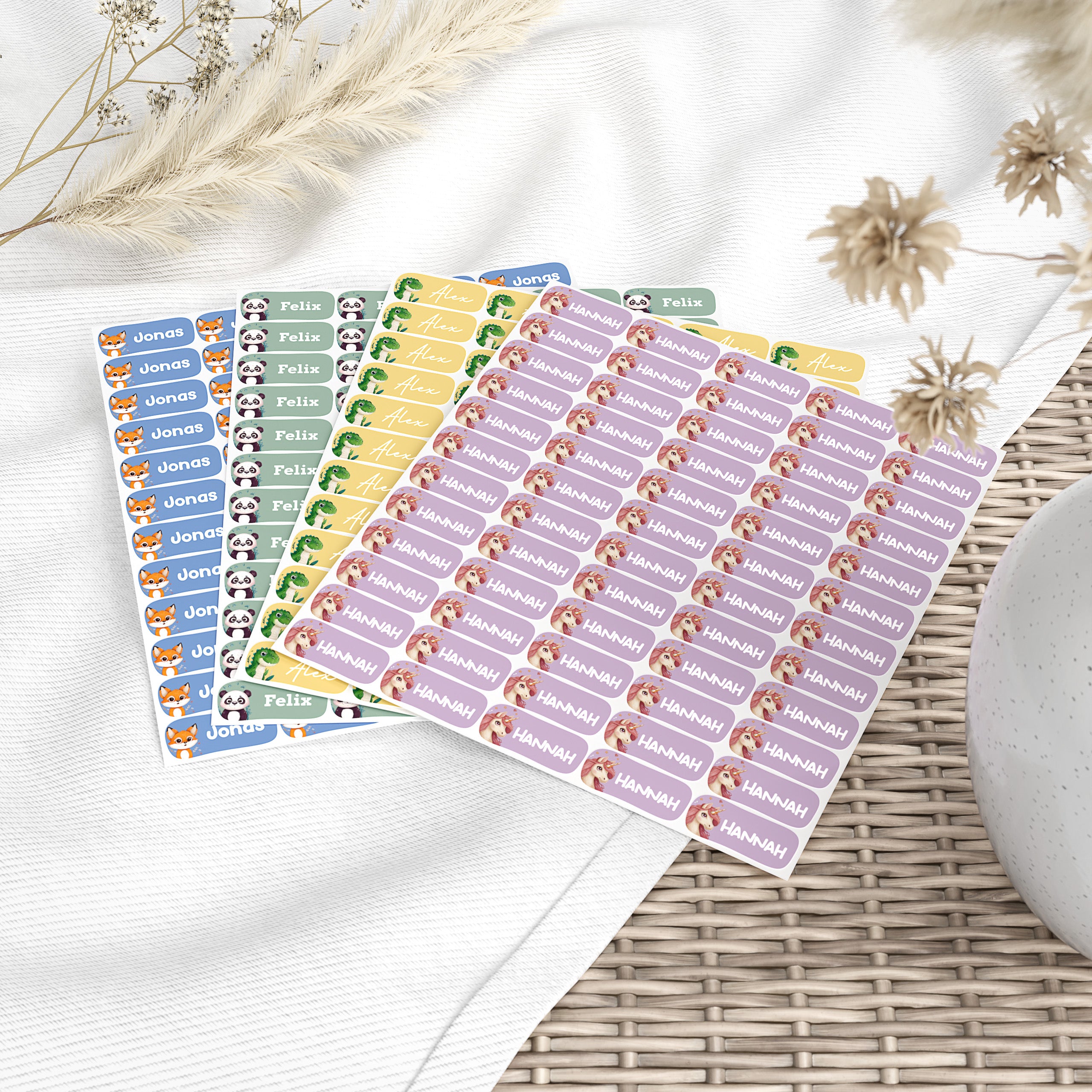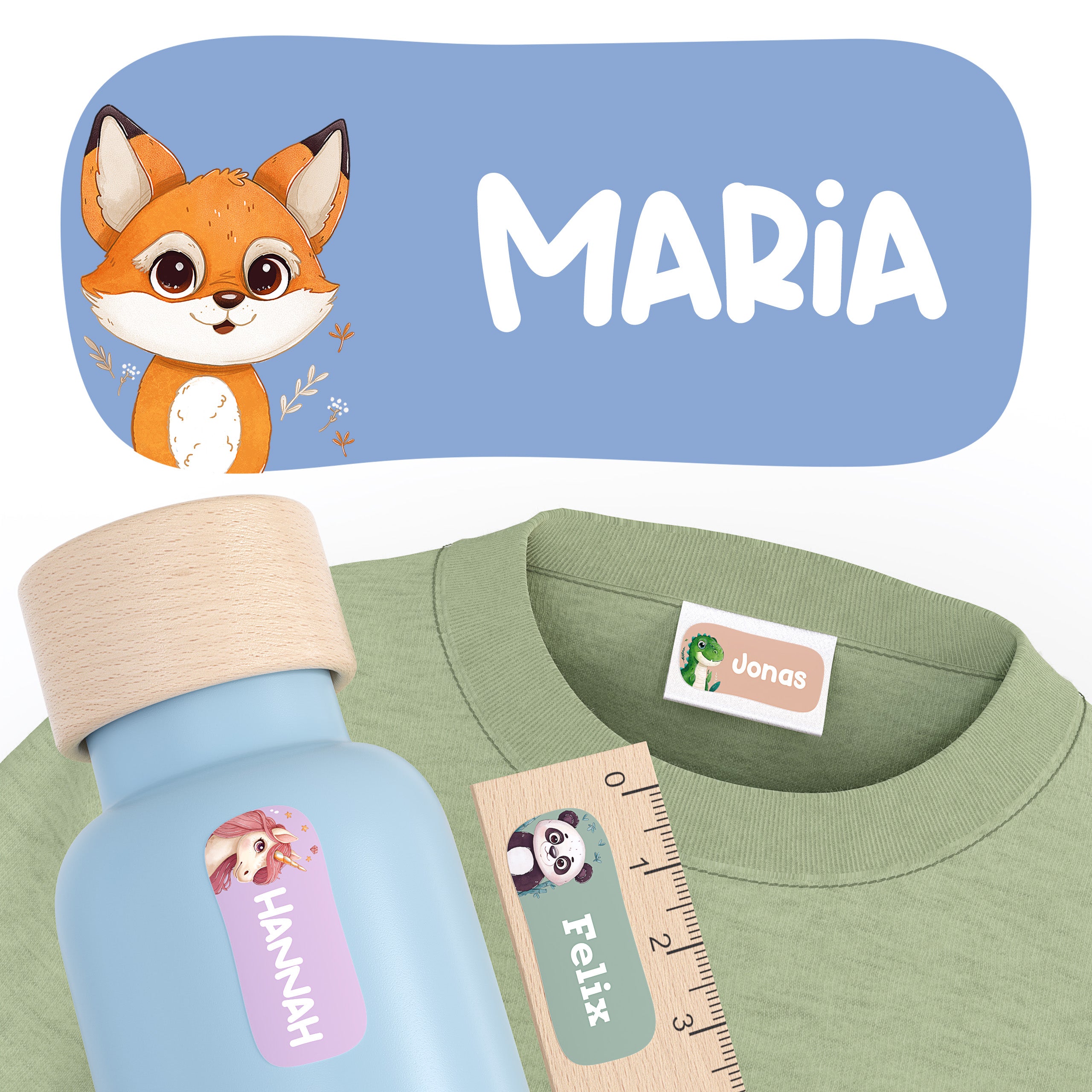 Namensaufkleber für Kinder – bunt, persönlich, haltbar. Markiere Kleidung und Gegenstände deines Kindes und sorge dafür, dass nichts mehr verloren geht – Tag für Tag, Jahr für Jahr.