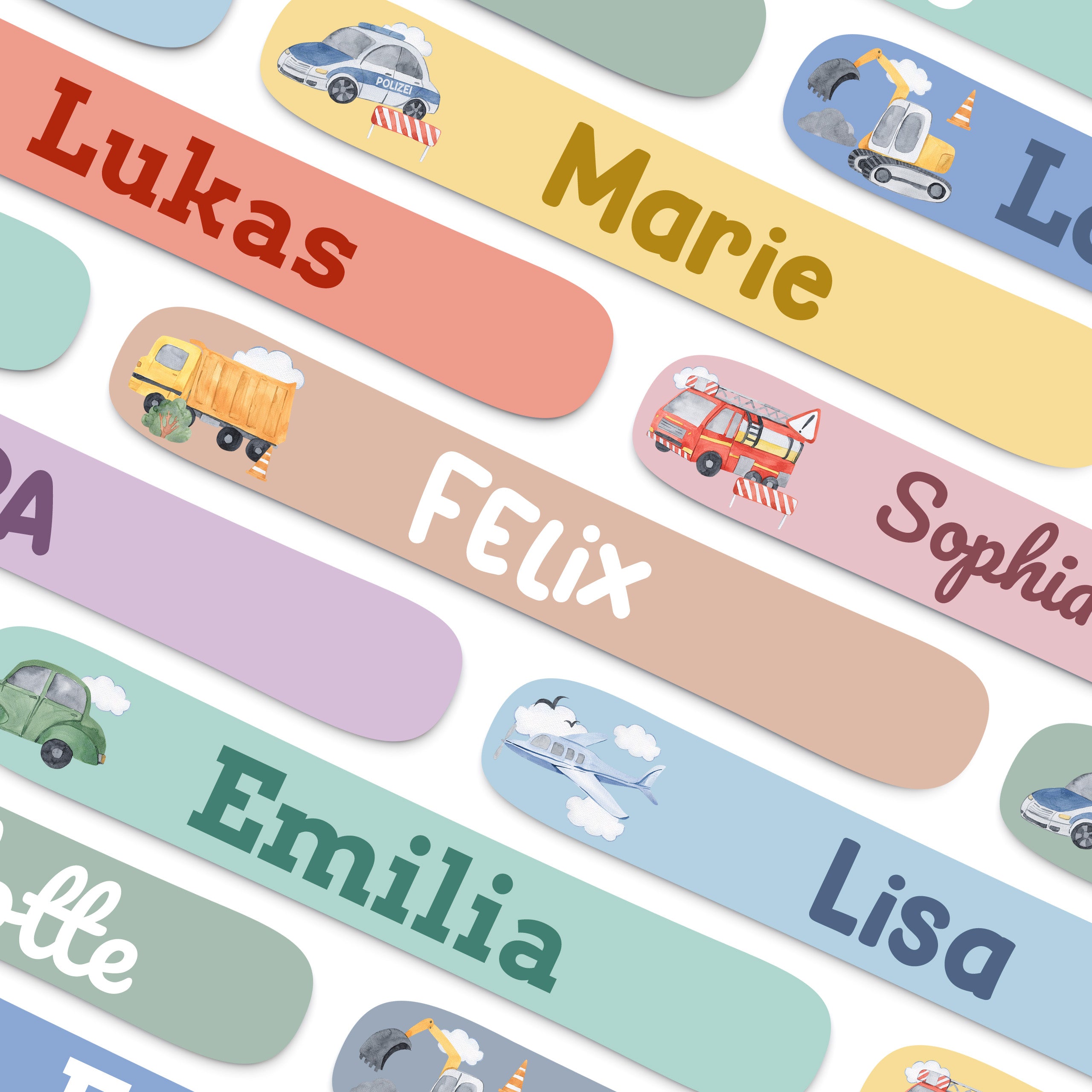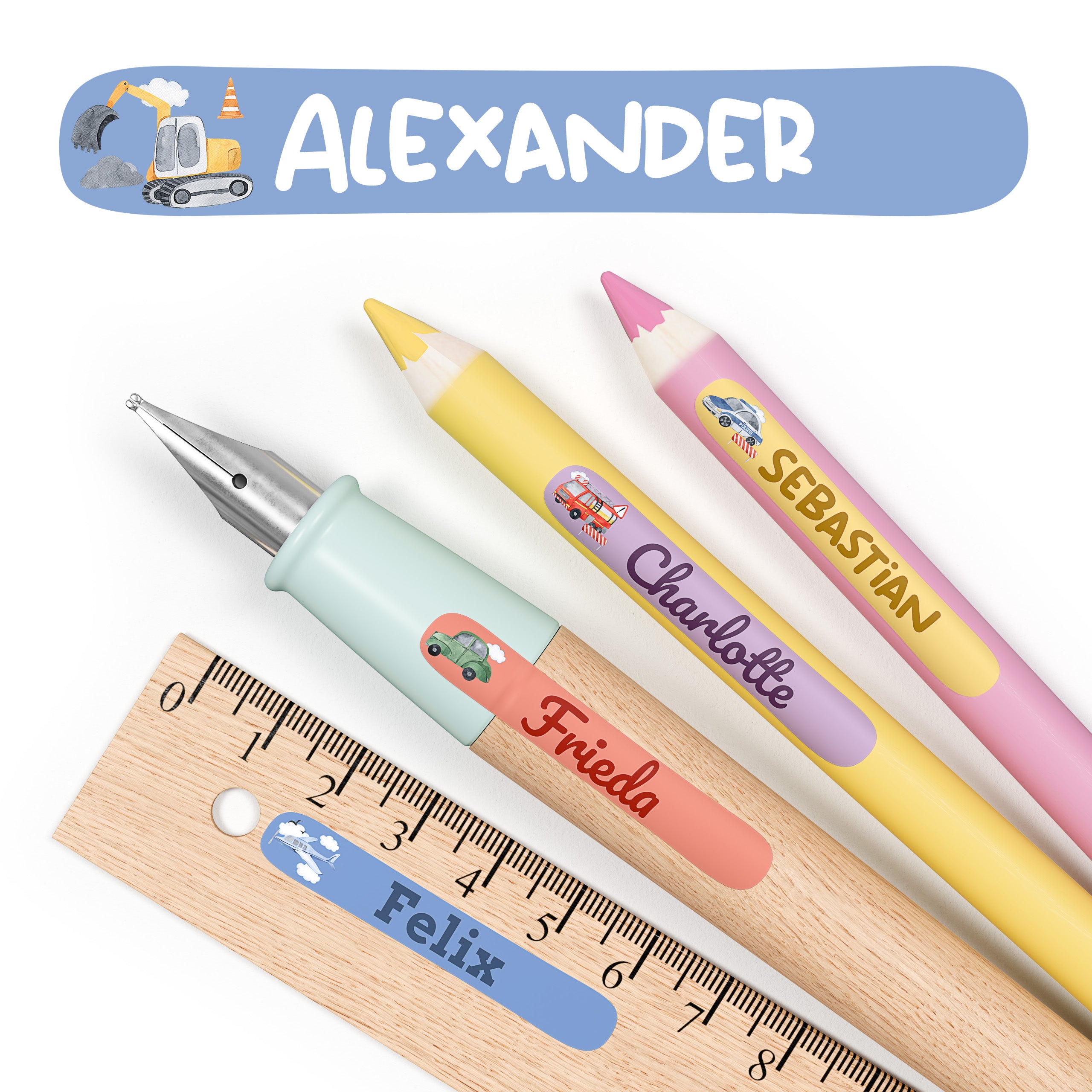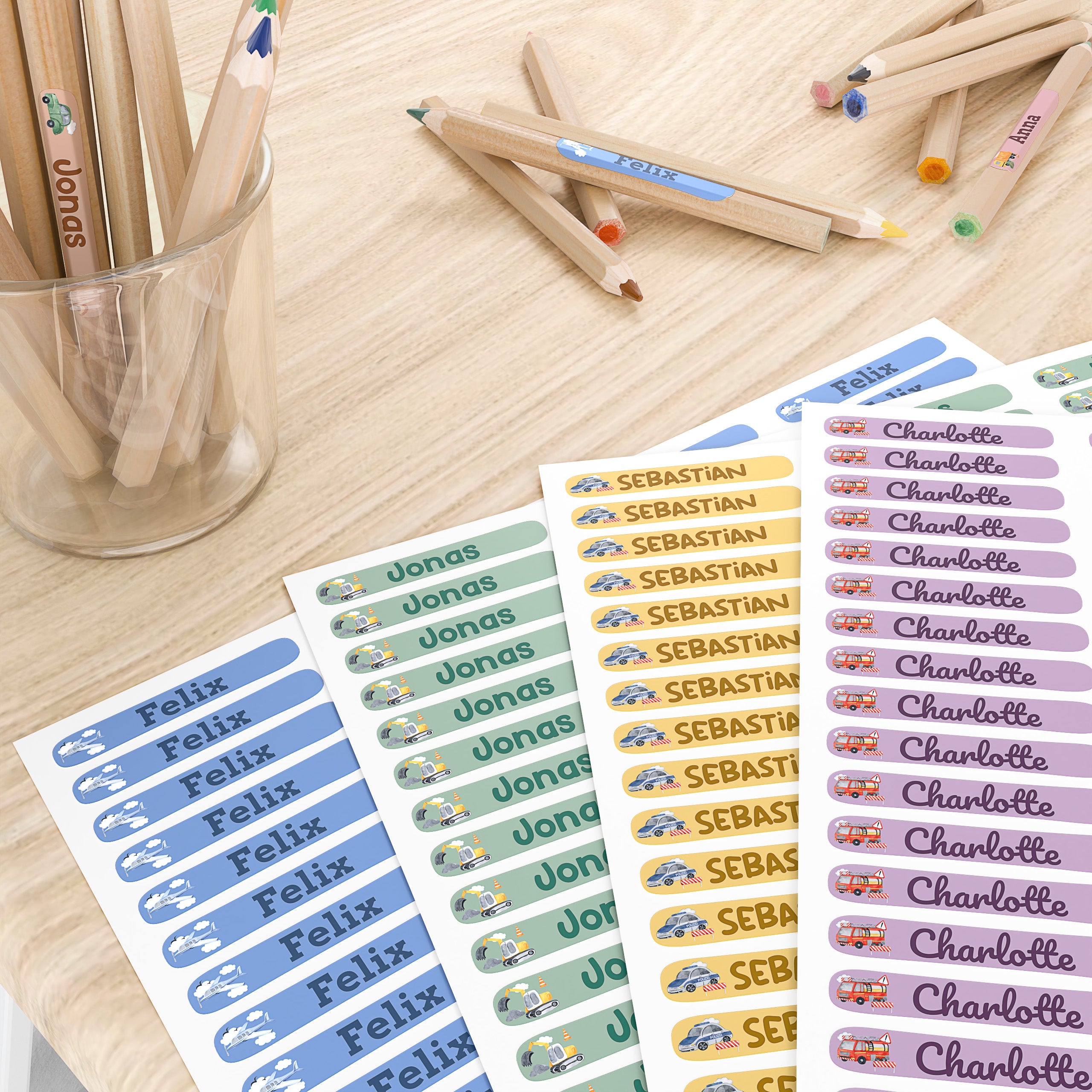 Namensaufkleber für Kinder – bunt, persönlich, haltbar. Markiere Schreibmaterialien und Gegenstände deines Kindes und sorge dafür, dass nichts mehr verloren geht – Tag für Tag, Jahr für Jahr.