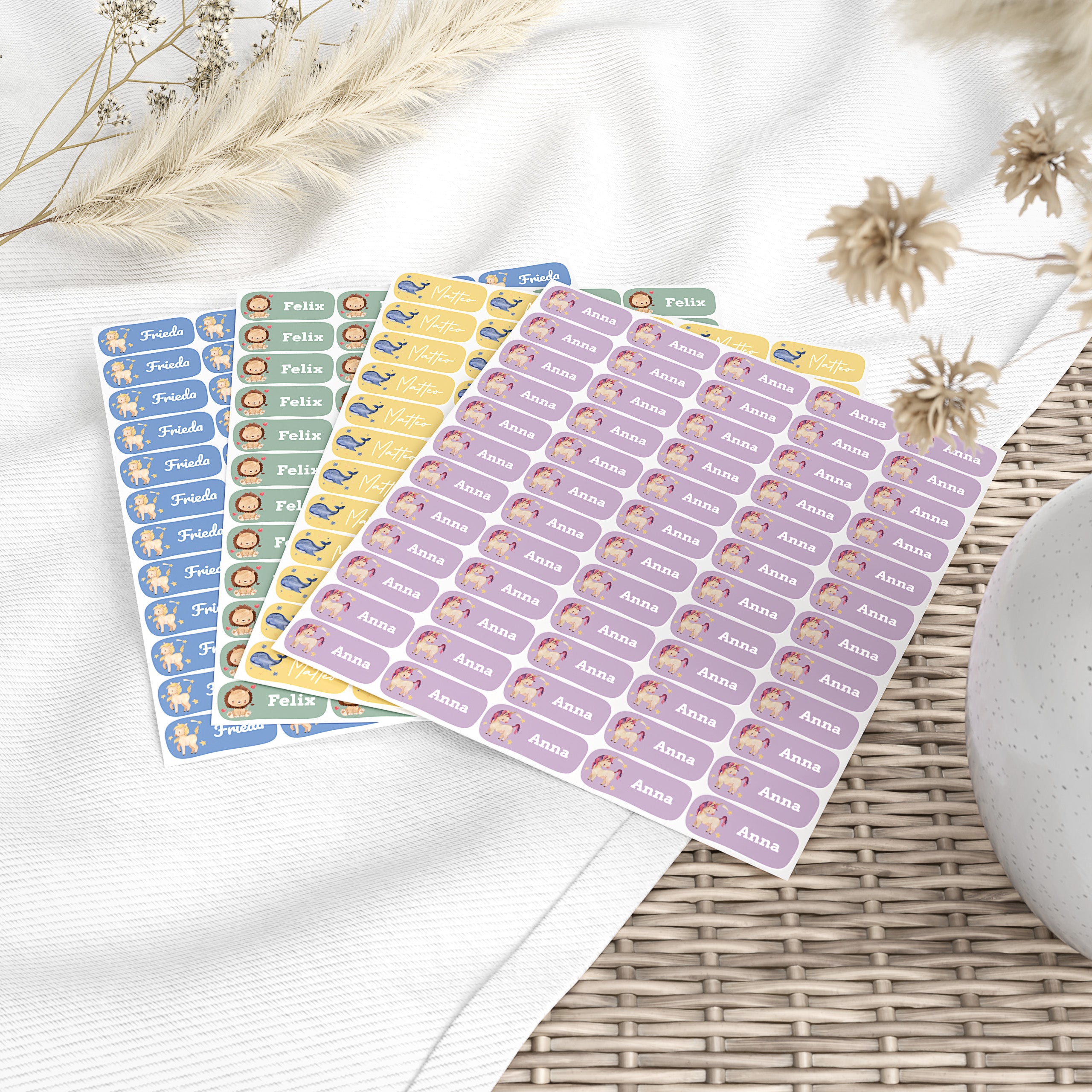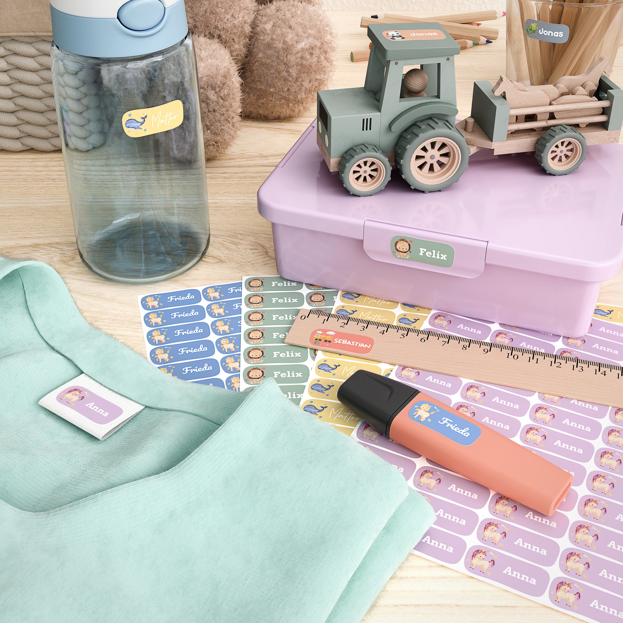 Namensaufkleber für Kinder – bunt, persönlich, haltbar. Markiere Kleidung und Gegenstände deines Kindes und sorge dafür, dass nichts mehr verloren geht – Tag für Tag, Jahr für Jahr.