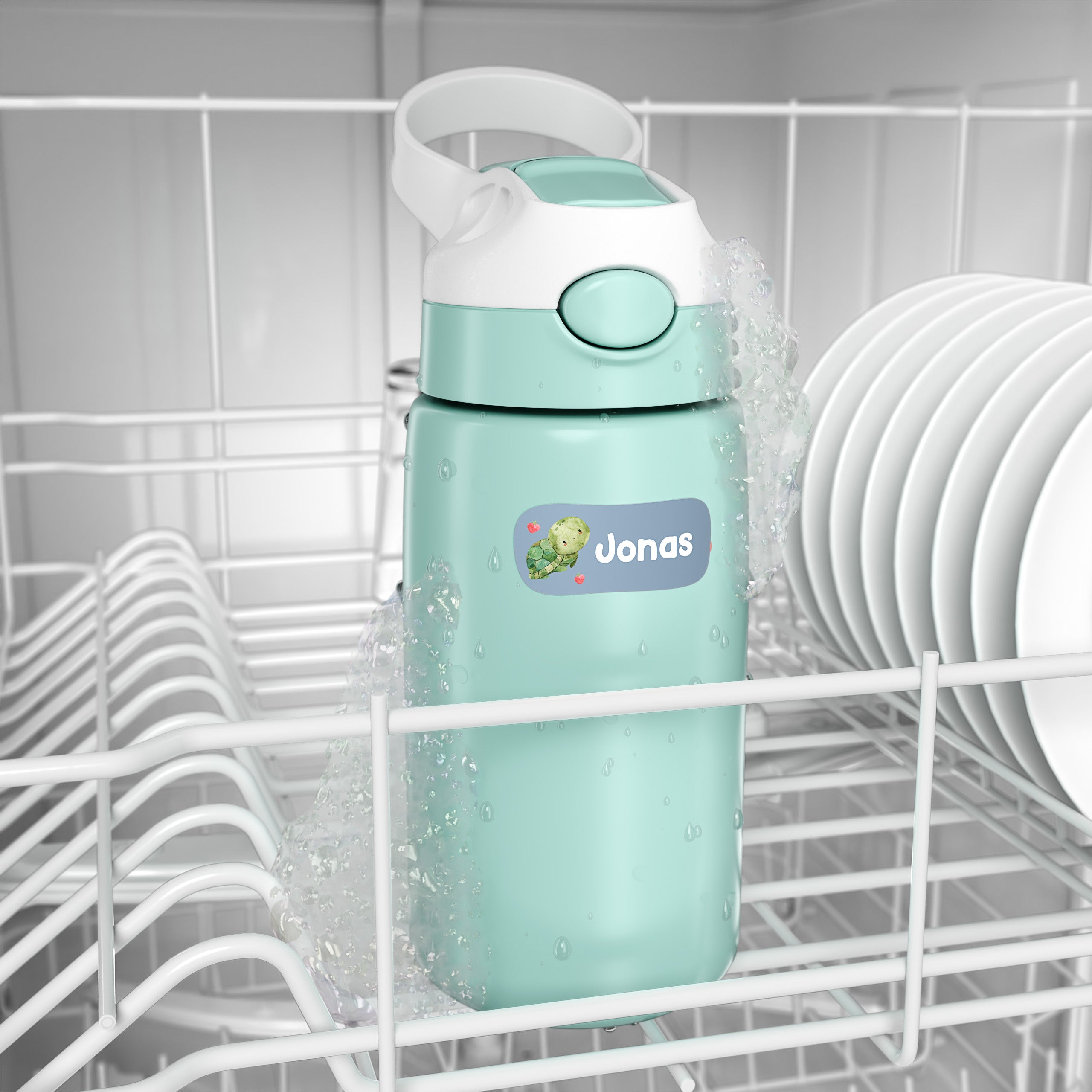 Ein Set enthält 60, 120 oder 180 Namensaufkleber in der Größe 30 x 13 mm – ideal, um alle Sachen deines Kindes dauerhaft zu kennzeichnen. Die Aufkleber lassen sich kinderleicht anbringen, ganz ohne Bügeln, und sind besonders langlebig: Sie überstehen Wäschen, Trockner, Geschirrspüler, Mikrowelle und sogar den Gefrierschrank.