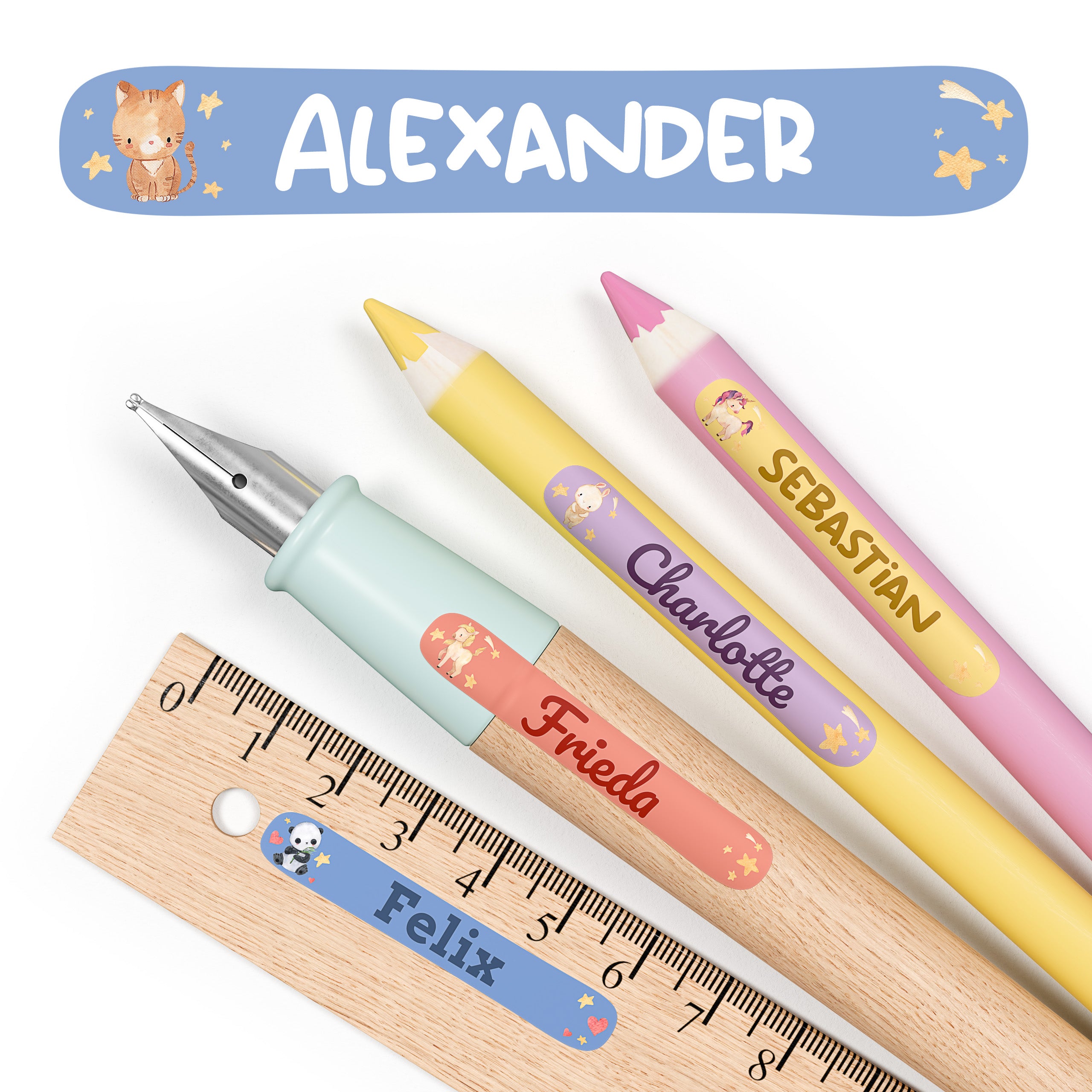 Namensaufkleber für Kinder – bunt, persönlich, haltbar. Markiere Schreibmaterialien und Gegenstände deines Kindes und sorge dafür, dass nichts mehr verloren geht – Tag für Tag, Jahr für Jahr.