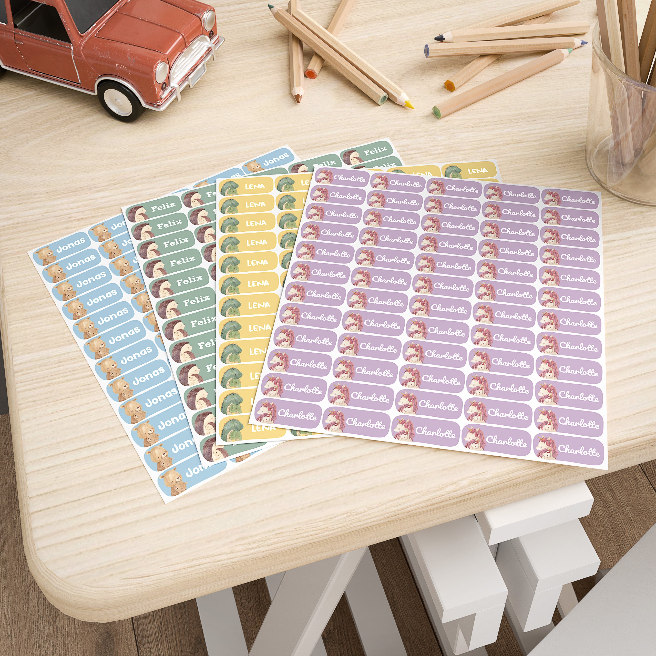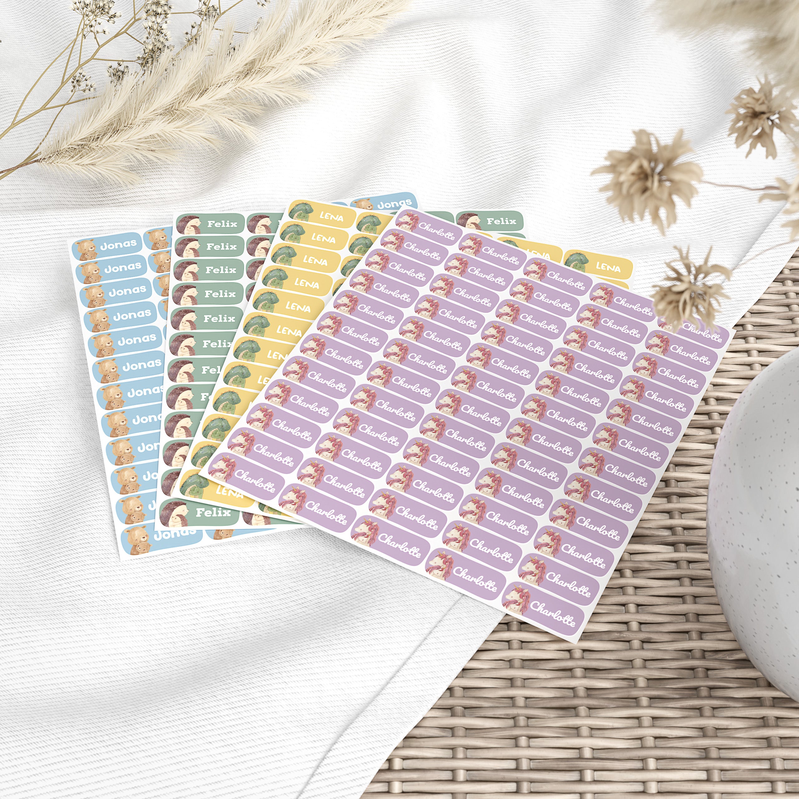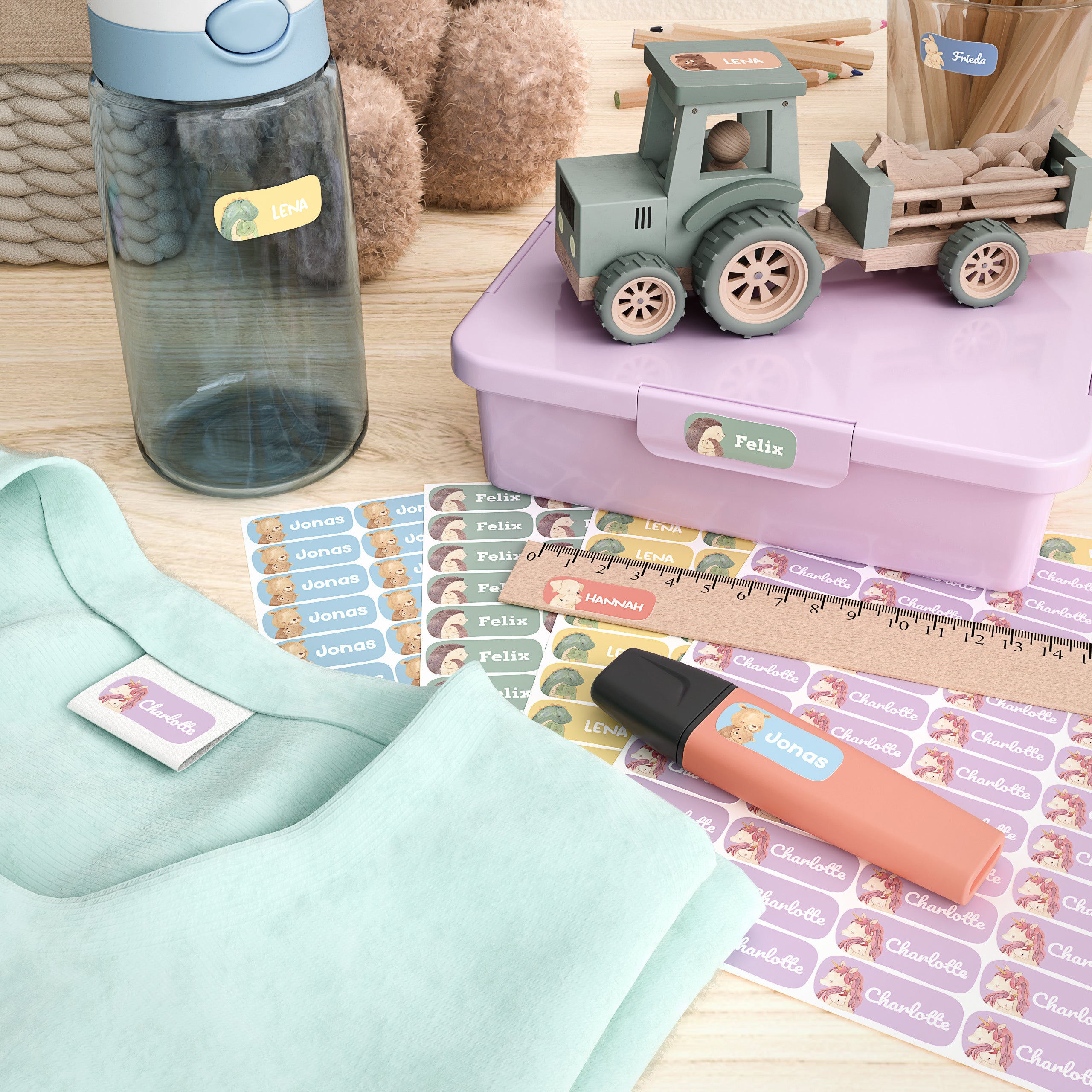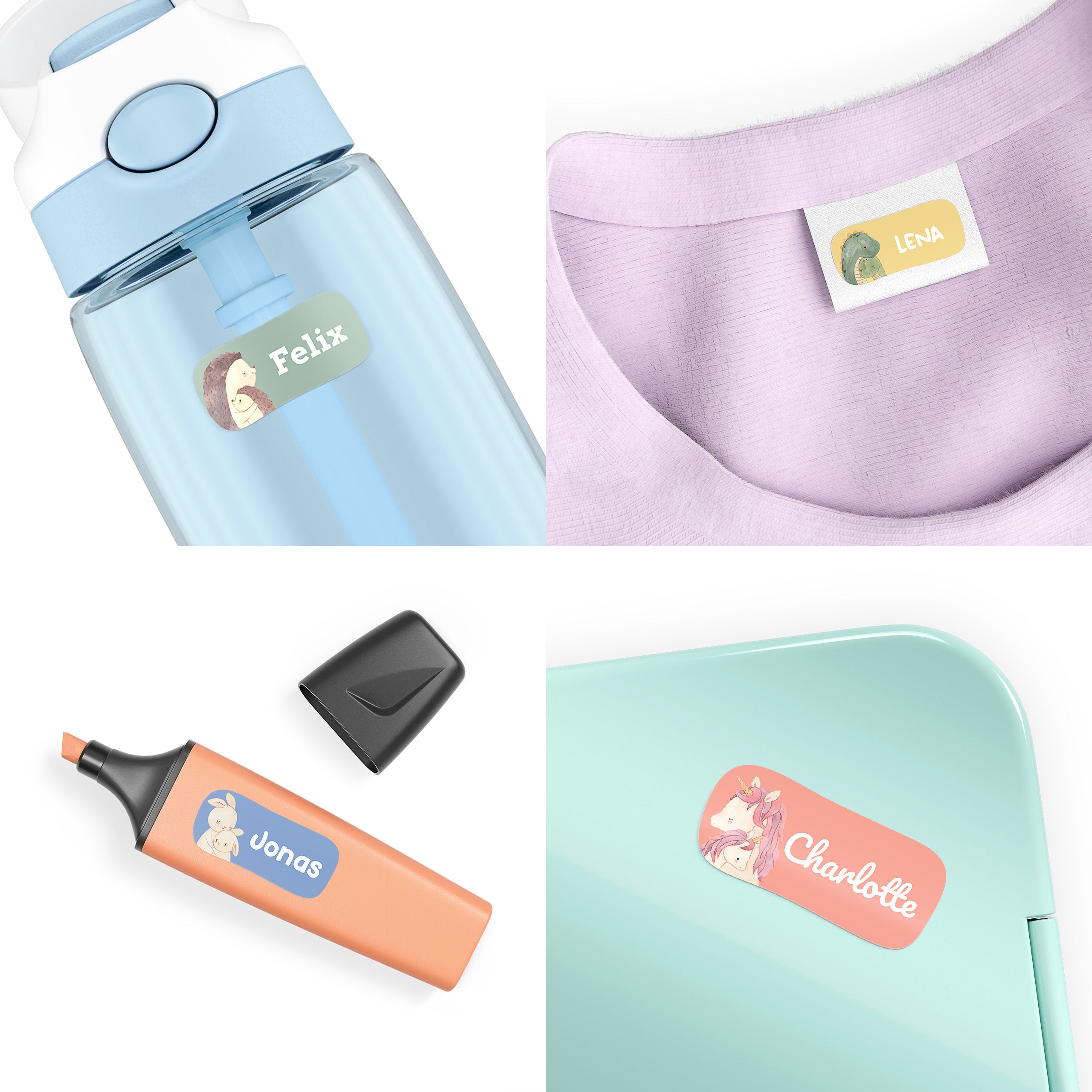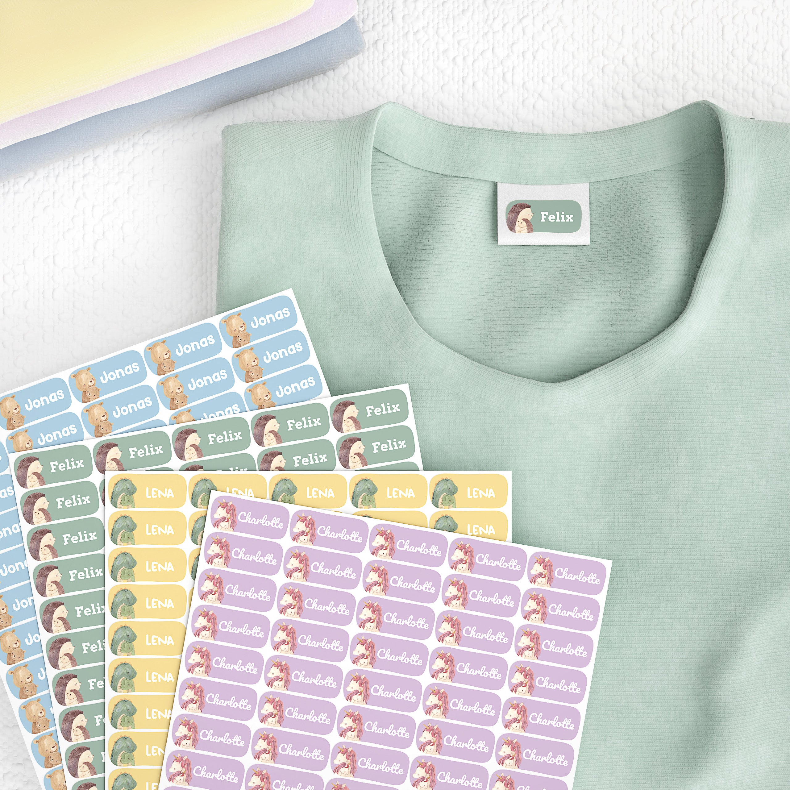 Namensaufkleber für Kinder – bunt, persönlich, haltbar. Markiere Kleidung und Gegenstände deines Kindes und sorge dafür, dass nichts mehr verloren geht – Tag für Tag, Jahr für Jahr.