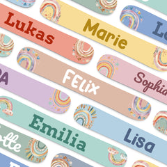 Diese bunte Kinderspardose mit bezaubernden Regenbogenmotiven ist ein wunderschönes Accessoire für das Kinderzimmer. Die schicken Regenbogenmotive auf dem Wecker werden kleine Kinderherzen höher schlagen lassen. In unserem Konfigurator können Sie aus diversen, niedlichen Tiermotiven auswählen und den Wunschnamen in Sechs unterschiedlichen Fonts hinzufügen. Die Spardose aus stabilem Kunststoff hat eine Kantenlänge von 10 cm und hat auf der Unterseite einen Verschluss aus Gummi.